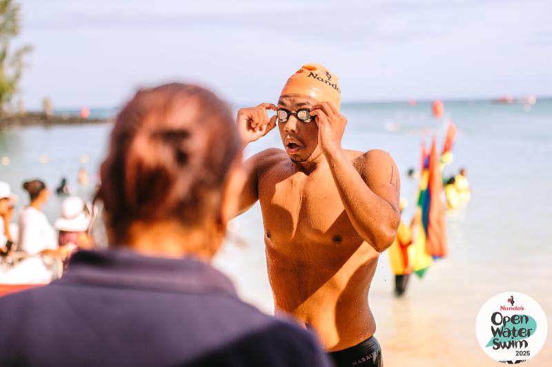 Swim around the demarcated looped route, indicated by the Nando’s buoys, to reach the finish line at Pereybere beach